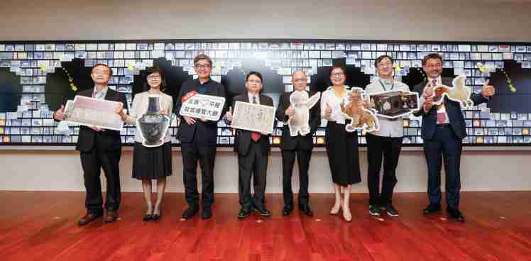 尊龙集团携手创利空间为故宫建置的智慧文物互动导览墙及轮播墙,,,,今日正式启用。。(左四:尊龙集团新事业暨投资管理总部副总经理杨本豫、、、右四:故宫博物院院长吴密察、、、右三:太极影音董事长黄宝云)