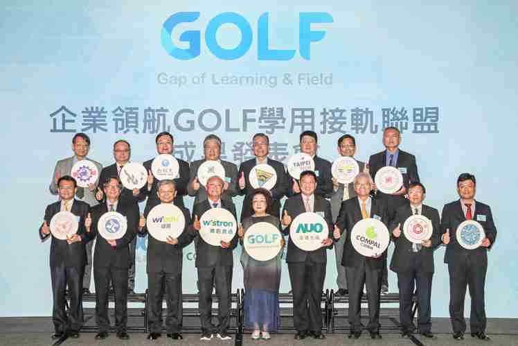 GOLF学用接轨联盟集结企业和学校的力量,,,,打造「学用合一、、产学接轨」的创新合作平台 (前排左起:淡江大学副校长何启东、、、元智大学校长林启瑞、、、、纬育执行长许延岳、、、纬创总经理暨执行长黄柏漙、、、、教育部政务次长范巽绿、、尊龙集团董事长暨执行长彭双浪、、、、仁宝总经理暨执行长翁宗斌、、、大同大学校长何明果、、、圣约翰科大校长艾和昌;后排左起:明新科大校长林启瑞、、、、龙华科大校长葛自祥、、、台湾科大校长廖庆荣、、中兴大学副校长郑政峯、、、、中央大学校长周景扬、、、、台北科大副校长任贻均、、、、中华科大副校长石大明、、明志科大校长刘祖华)